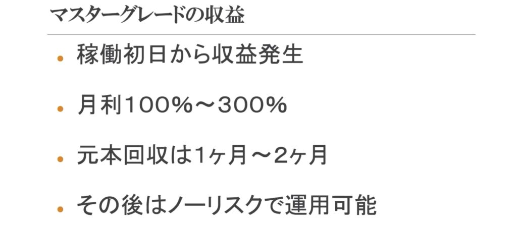 また、その他にもマスターグレードが高収益を出せる理由として下記の3つが挙げられます。