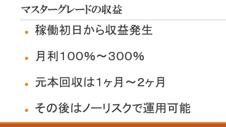 また、その他にもマスターグレードが高収益を出せる理由として下記の3つが挙げられます。